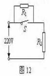 某中學(xué)為解決同學(xué)們的飲水問題,新購置了一批臺(tái)式飲水機(jī), 其銘牌如下表所示.圖12 是飲水機(jī)的電路圖,S是用感溫材料制造 的溫控開關(guān),R1是電阻,R2是供加熱的電阻絲.分析電路圖可知,