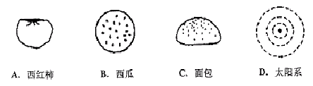 自從湯姆遜發(fā)現(xiàn)了電子,人們開始研究原子內(nèi)部結(jié)構(gòu)?茖W(xué)家提出了許多原子結(jié)構(gòu)的模型,在二十世紀(jì)上半葉,最為大家接受的原子結(jié)構(gòu)與圖中哪個圖最相似?