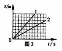 用測(cè)力計(jì)兩次拉動(dòng)重為G的物體豎直向上運(yùn)動(dòng),兩次運(yùn)動(dòng)的S一t圖像如圖3所示,其對(duì)應(yīng)的測(cè)力計(jì)示數(shù)分別為F1、F2,則F1和F2的大小關(guān)系是