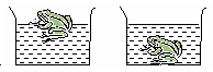 如圖所示,將一只玩具青蛙放入水中,它能漂浮于水面;把它放入另一種液體中,它卻沉入底部。則在這兩種情況下這只玩具青蛙受到的浮力大小相比較