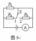 如圖所示電路電源兩端電壓不變,定值電阻的阻值R1∶R2∶R3=4∶5∶6。開關(guān)S接1時(shí),電流表的示數(shù)為0.9A。開關(guān)S接2時(shí),電流表的示數(shù)I?=________A。