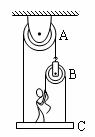 如圖所示的裝置中,重600N的人用力拉繩,使裝置處于靜止。裝置中的滑輪A重500N,滑輪B重200N,底板C重100N。不計(jì)軸摩擦及繩重,人對(duì)底板C的壓力為________N。