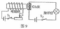 法國和德國的科學(xué)家費爾和格林貝格爾由于發(fā)現(xiàn)了巨磁電阻(GMR)效應(yīng),榮獲了2007年諾貝爾物理學(xué)獎,圖9是研究巨磁電阻特性的電路示意圖,當(dāng)閉合S1、S2后使滑片P向左滑動過程中,指示燈明顯變亮,則下列說法正確的是