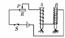 如圖所示,小明同學(xué)在在探究電磁鐵磁場強度與哪些因素有關(guān)的過程中,使用兩個相同的大鐵釘繞制成電磁鐵進(jìn)行實驗,當(dāng)通電后,繞線多匝的大鐵釘吸的小鐵釘多,向右滑動P時,小鐵釘紛紛掉落,從這些現(xiàn)象中可得到的結(jié)論是:(1) ;(2) 。