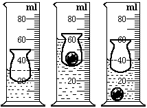 空玻璃杯漂浮在水面上時(shí)量筒的示數(shù):ml | 水晶球的體積 cm3 | 計(jì)算出水晶球的質(zhì)量 g | 水晶球的密 度:g/cm3 |