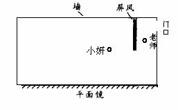 舞蹈教室有一面非常大的平面鏡,如圖。小妍同學(xué)在教室內(nèi)排練舞蹈,當(dāng)老師從外面進(jìn)入到圖示位置時(shí),即使隔著木屏風(fēng),她也能從平面鏡看到小妍,請(qǐng)作出成像光路圖(老師和小妍的位置用O表示)