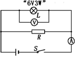標有“6V 3W”的小燈泡L與額定功率為6W的電阻器R按如圖12電路連接在一個恒定電壓的電源上,閉合開關S時,燈L正常發(fā)光,且電流表的示數(shù)為0.75A.求: