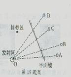 “小科學家”比賽中,有一項目是“反彈擊物”(如圖),要求參賽者將皮球射到平面鏡上,經(jīng)平面鏡反彈擊中目標區(qū)內的物體。參賽者在發(fā)射區(qū)沿哪一方向射球,最有可能擊中目標