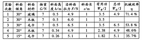 小剛小組探究了影響滑輪組機械效率的因素后,聯(lián)想斜面也是一種機械,那么斜面的機械效率與斜面的哪些因素有關(guān)呢?小剛猜想斜面的機械效率可能跟斜面的粗糙程度有關(guān),小萌猜想可能跟斜面的傾斜程度有關(guān)。于是他們將一塊長木板的一端墊高,構(gòu)成長度一定、高度可調(diào)的斜面,用彈簧測力計拉著同一木塊沿不同的斜面勻速向上運動,如圖28所示。下表是他們實驗記錄得有關(guān)數(shù)據(jù)。