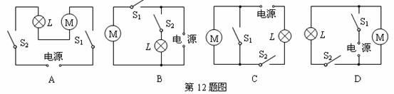 家用電冰箱中消耗電能的器件主要是電動(dòng)壓縮機(jī)和照明燈泡.其中電動(dòng)壓縮機(jī)M受溫控開關(guān)S1控制,照明燈泡L受門控開關(guān)S2控制.溫控開關(guān)S1和門控開關(guān)S2既能單獨(dú)工作又能同時(shí)工作.如圖所示是幾個(gè)同學(xué)畫的家用電冰箱的電路圖,其中正確的是