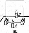 石林中學(xué)的張江同學(xué)自備器材,主動探究“平面鏡成像的規(guī)律”,其情形如圖7所示,他先把一塊平板玻璃垂直立在水平桌面上,再準(zhǔn)備A、B兩支大小、外形完全一樣的蠟燭,然后把點燃的蠟燭A立在玻璃板前,又把蠟燭B放在玻璃板后面,并移動蠟燭B的位置,使它與蠟燭A的像完全重合。