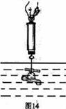 上周學(xué)校購買了一批水龍頭,據(jù)商家說其材料銅質(zhì)的,實驗室的老師組織九年級的一些同學(xué)通過實驗來驗證商家的說法。他們把一個水龍頭用輕質(zhì)細(xì)線捆好后掛在彈簧測力計上,在空氣中測得它的重力為1.6N,再把這個水龍頭浸沒在水中,如圖14所示,這時彈簧測力計的讀數(shù)為1.4N(ρ銅=8.9×103kg/m3, g=10N/kg)。