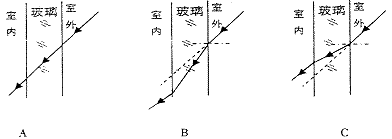 (2)如圖所示三幅圖中,哪幅圖能真實反映太陽光線通過玻璃幕墻進(jìn)入室內(nèi)的傳播途徑。答:______________(填選項中的字母)