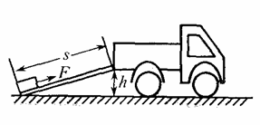 工人師傅常采用斜面把重物搬運到汽車上,如圖所示.汽車車廂底板高度為h,斜面長度為S,現(xiàn)用力大小為F沿著斜面把重力為G的重物勻速拉到車上.求: