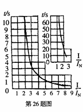 當電流超過保險絲的額定電流并達到一定值時,保險絲就會熔斷起到保護電路的用,這是一種簡化的說法。右圖是一種典型的保險絲熔斷特性曲線,人表示額定電流。則關于該種保險絲的有關敘述:①電流小于額定電流的1.25倍時,保險絲可保持長期不熔斷;②電流等于額定電流的2倍時,保險絲約需20 秒熔斷;③當電流等于額定電流的5倍時,保險絲的熔斷時間仍大于1秒;④當電流大于等于額定電流的10倍時,熔斷時間小于0.4秒,可認為瞬時熔斷。其中正確的是