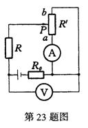 如圖23所示電路中,電源電壓保持不變,當(dāng)滑動(dòng)變阻器的滑鍵P自a向b移動(dòng)過程中,圖中各電表示數(shù)變化的情況是( )