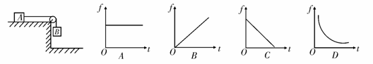 如圖所示,物體A在B的牽引下沿水平桌面向右運動,從物體B觸地開始到物體A剛好靜止下來這段時間內(nèi),物體A受水平桌面的摩擦力大小f隨時間t變化關(guān)系的圖象是( )