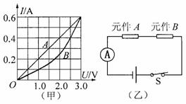 有兩個(gè)電路元件A和B,流過元件的電流與其兩端電壓的關(guān)系如圖(甲)所示,把它們串聯(lián)在電路中,如圖(乙)所示,閉合開關(guān)S,這時(shí)電流表的示數(shù)為0. 4A,則電源電壓和元件B的電功率分別是( )