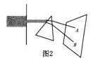 如圖2,一束太陽光射到三棱鏡上,在棱鏡后側(cè)光屏上AB范圍內(nèi)觀察到不同顏色的光,則( )