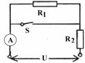 如圖所示的電路中,當(dāng)開關(guān)S斷開與閉合時,電流表的兩次示數(shù)之比是1:3, 則S斷開與閉合時R2上的兩次電功率之比是