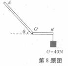 如圖所示,AOB為一機(jī)械設(shè)備的簡(jiǎn)化示意圖,我們可以把它看成杠桿(自重不計(jì)),已知AO=2OB。固定O點(diǎn),使OB 處于水平位置,此時(shí)B 端掛一重為40N 的物體,要使杠桿不發(fā)生轉(zhuǎn)動(dòng),至少需在A 端施加F=______N 的力,在圖上畫出此時(shí)力F的方向。