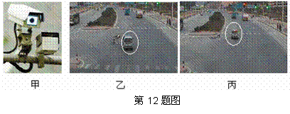 如圖甲所示是現(xiàn)代城市很多路口安裝的監(jiān)控?cái)z像頭,它可以拍下違章行駛或發(fā)生交通事故時(shí)的現(xiàn)場(chǎng)照片。攝像頭的鏡頭相當(dāng)于一個(gè) 鏡,它的工作原理與 (選填“照相機(jī)”、“投影儀”或“放大鏡”)相似。如圖乙和丙是一輛汽車經(jīng)過路口時(shí)與一輛自行車相撞后被先后