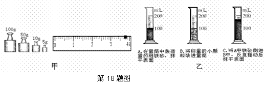 (5)在C步操作中,若因鐵砂較少,全部倒進(jìn)并反復(fù)搖動(dòng)后,沒有完全覆蓋顆粒, 則測(cè)出的值比實(shí)際密度偏 (填“大”或“小”)。