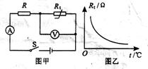 如圖甲所示的電路中,R是一個(gè)定值電阻,Rt是一個(gè)半導(dǎo)體材料制成的熱敏電阻,其阻值隨溫度變化的曲線(xiàn)如圖乙所示,當(dāng)開(kāi)關(guān)閉合且電阻Rt所處的環(huán)境溫度升高時(shí),電流表示數(shù) ,電壓表示數(shù) 。(以上兩空選填“增大”、“減小”或“不變”)