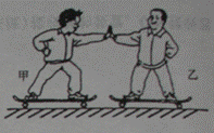 質(zhì)量相等的甲、乙兩同學(xué)站在滑板上,在旱冰場(chǎng)上相對(duì)而立,如果甲用60N的力推乙,如圖所示。以下分析正確的是【 】