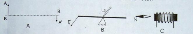 (1)下圖A給出物體AB及像A′B′的位置,請(qǐng)?jiān)趫D中畫出凸透鏡及其焦點(diǎn)F的大致位置。