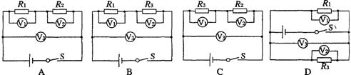 在探究電路的電壓規(guī)律實驗時用了下圖中的某個電路,已知R1=R2<R3,電壓表V1、V2和V3的讀數(shù)分別為1.0V、1.5V和2.5V.實驗時的電路圖應(yīng)是