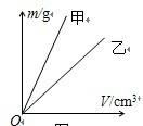 小強(qiáng)同學(xué)在探究甲、乙兩種物質(zhì)的質(zhì)量和體積的關(guān)系時(shí),得出了如圖所示的圖象。由圖象分析可知
