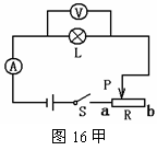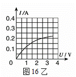 (3)該同學(xué)移動滑片P,記下多組對應(yīng)的電壓表和電流表的示數(shù),并繪制成圖16乙所示的I-U圖象,根據(jù)圖象信息,可計算出小燈泡的額定功率是 W.