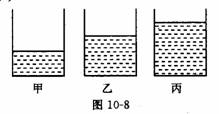 質(zhì)量相等的酒精、硫酸和水,分別倒入三個相同的玻璃杯中,如圖10—8所示,玻璃 杯甲中裝的是 ,玻璃杯乙中裝的是 。(ρ酒=0.8×l03kg/m3,ρ硫酸=1.8×103kg/m3)