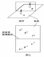 一組同學(xué)在探究平面鏡成像的特點時,將點燃的蠟燭A放在玻璃板的一側(cè),看到玻璃板后有蠟燭的像.此時用另一個完全相同的蠟燭B在玻璃板后的紙面上來回移動,發(fā)現(xiàn)無法讓它與蠟燭A的像完全重合(圖甲).你分析出現(xiàn)這種情況的原因可能是:___________________________________________