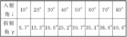 圖是研究光的折射規(guī)律的實驗原理圖;下表中記錄了不同的入射角和對應(yīng)的折射角的實驗測量數(shù)據(jù).