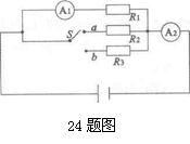 如圖所示,電源電壓恒定不變,當開關S接a時,電流表A1與A2的示數之比為3:5;當開關S接b時,電流表 A1與A2的示數之比為2:3,則R2與R3的電阻之比為