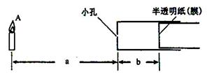 如圖,點燃的蠟燭放在距小孔a處,它成像在距小孔b的半透明紙上,且a大于b。則半透明紙上的像是( 。