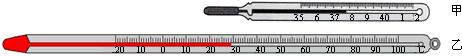 如圖所示,甲是體溫計(jì),乙是實(shí)驗(yàn)室用溫度計(jì),可用來(lái)測(cè)沸水溫度的是 _________;體溫計(jì)可以離開(kāi)被測(cè)物體來(lái)讀數(shù),是因?yàn)轶w溫計(jì)上有個(gè) _________。