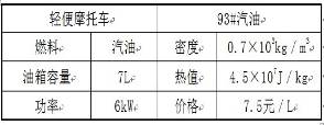 李老師的家離學校大約10km,為了便于上下班,他購買一部輕便摩托車來代步,使用的燃料為93#汽油,根據(jù)表中提供的數(shù)據(jù),請回答: