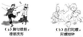 如圖(a)、(b)所示,“跳橡筋”和“打陀螺”是老上海典型的弄堂游戲,其中如圖