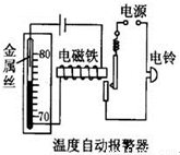 如圖是一種溫度自動報警器的原理圖.制作水銀溫度計時插入一段金屬絲,當溫度達到______℃時,電鈴就會發(fā)聲,此時電磁鐵右端是______極.