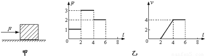 如圖甲所示,放在水平地面上的物體,受到方向不變的水平推力F的作用,F(xiàn)的大小與時間t的關(guān)系和物體運(yùn)動速度v與時間t的關(guān)系如圖乙所示.由圖象可知當(dāng)t=1s時,物體處于