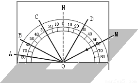 在做“研究光的反射實驗”時,如圖所示,將一束光沿MO射向鏡面,則反射光的方向是( )