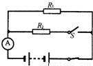 如圖所示的電路中,電源電壓不變,當(dāng)開(kāi)關(guān)S閉合時(shí),電流表的示數(shù)為0.8安;開(kāi)關(guān)S斷開(kāi)后,電流表的示數(shù)改變了0.5安,則R