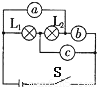 如圖所示的電路里,在圓圈a,b,c上連接適當(dāng)電表,使燈L