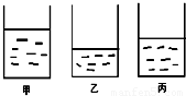 D.甲杯是煤油,乙杯是水,丙杯是鹽水