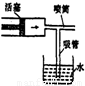 如圖所示,是簡易噴霧器的結(jié)構(gòu)示意圖.當(dāng)活塞向右快速推進時,氣缸中的空氣從噴筒快速流出,致使噴筒中的氣壓