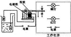 如圖是“自動(dòng)水位顯示器”的電路圖.當(dāng)水位未到達(dá)金屬塊B時(shí),綠燈亮;當(dāng)水位到達(dá)B時(shí),紅燈亮.請(qǐng)根據(jù)以上要求,用筆畫線代替導(dǎo)線,完成工作電路的連接.