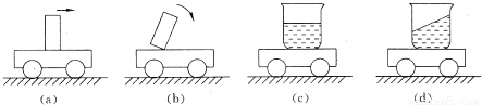 如圖(a)所示,木塊與小車一起做勻速直線運(yùn)動(dòng),當(dāng)小車的運(yùn)動(dòng)狀態(tài)發(fā)生變化時(shí),木塊的狀態(tài)如圖8(b)所示.把木塊換成盛有水的燒杯,重復(fù)上述過(guò)程,燒杯中水面的狀態(tài)分別如圖(c)和(d)所示.由圖(a)、(b)或圖(c)、(d)可知:小車運(yùn)動(dòng)狀態(tài)變化的可能情況是______(請(qǐng)將兩種可能的情況填寫完整).得到上述結(jié)論是利用了木塊和水都具有______的性質(zhì).